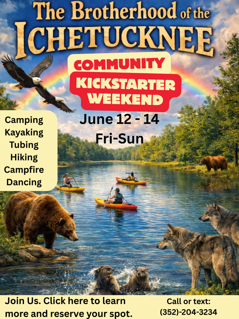 The Brotherhood of the Ichetucknee River is a community rooted in that land — a circle of gay, bi, and trans men, along with welcoming allies, gathering for camping weekends, river floats, lake days, shared meals, and connection that feels grounded and real.