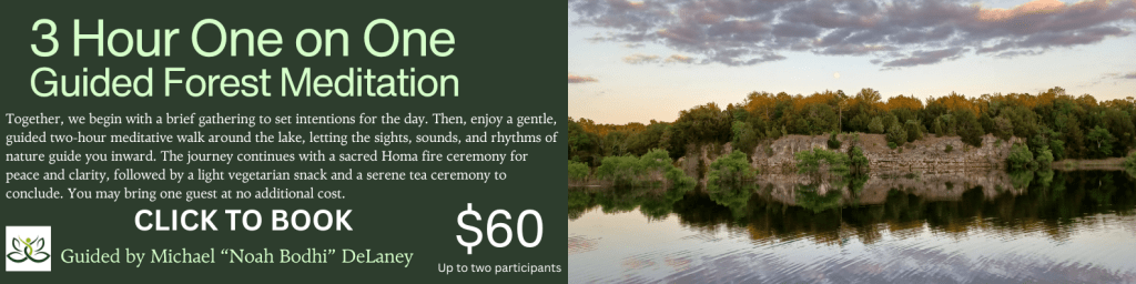 Begin your journey with a brief gathering to set our expectations and intentions and align with the natural rhythm of the day. Then, you will enjoy an immersive, guided two-hour meditative walk around the lake, allowing the sights, sounds, and stillness of nature to guide you inward. The walk is followed by a sacred Homa fire ceremony to invite peace and clarity. A light vegetarian snack will nurture your body, and a calming tea ceremony will gently conclude the experience. You are welcome to bring one guest at no additional cost; for groups of three or more, we invite you to reserve a private guided retreat.